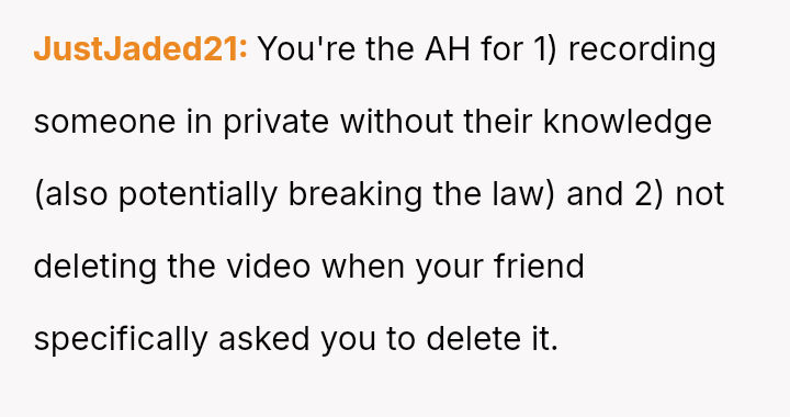 After returning, the user played the recording for the friend, who then requested a copy and asked the user to delete the original file, leaving the user questioning whether their interference was appropriate.