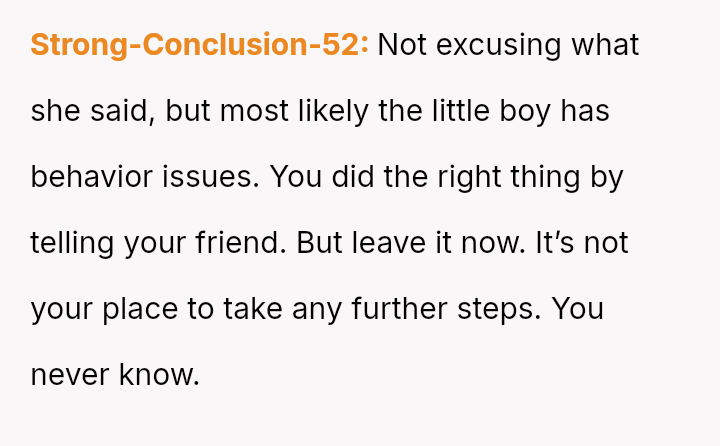 The central conflict lies between the user's perceived duty to protect the child and their action of overstepping boundaries by secretly recording and presenting private conversations to the friend.