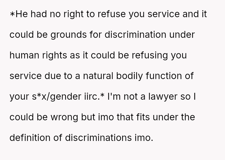 Her subsequent reaction, demanding disciplinary action against the employee, stemmed from a feeling of being judged and having her autonomy questioned at a time when she already felt vulnerable and uncomfortable.