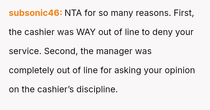 Was the OP justified in escalating the situation to demand the cashier's termination over a poorly delivered suggestion, or did her frustration lead to a disproportionate response against a well-intentioned but misguided employee?