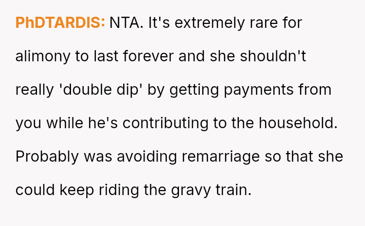 The core question is whether the OP was justified in seeking full custody and terminating alimony based on the change in his ex-wife's living situation, or if his actions were unfair given the resulting financial hardship on his ex-partner and her new family unit?