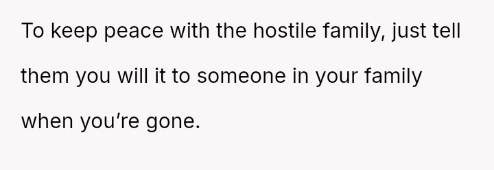 The core question remains: Does a stepchild have any claim to an in-law's personal heirloom, regardless of shared history or biological ent*tlement?