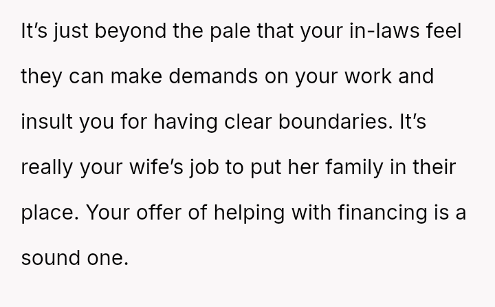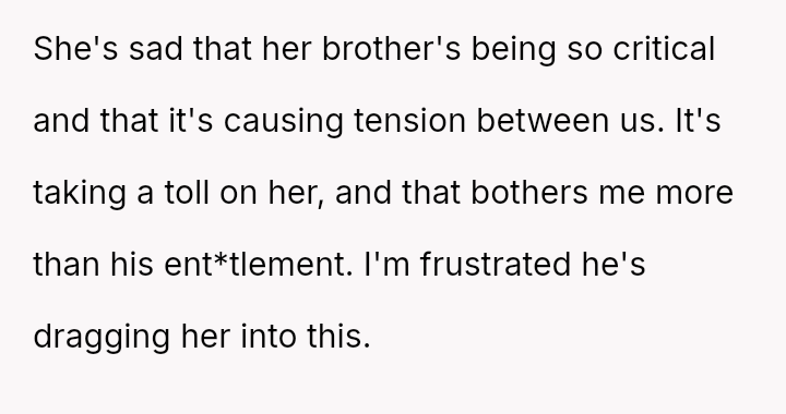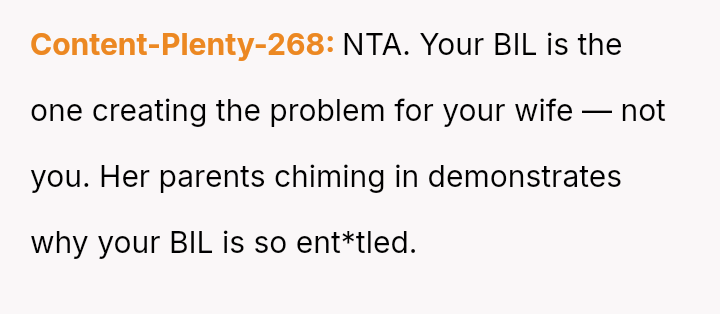 This stance has led to criticism from the brother-in-law and in-laws, causing emotional distress for the OP's wife who is caught between her husband's principles and her family's expectations.