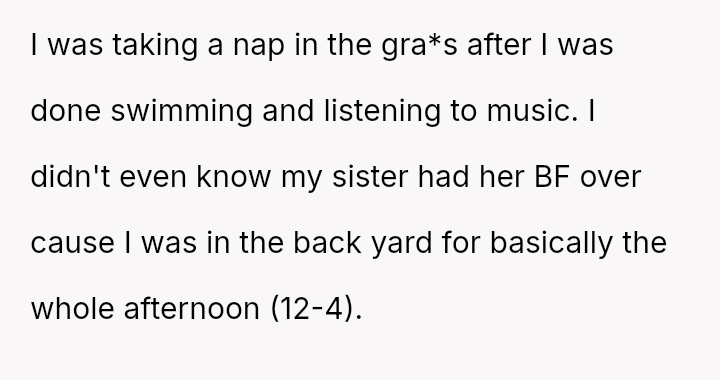 The backyard was her sanctuary, a place where time slowed and worries melted away, unaware that her sister’s boyfriend was just a few feet away, watching through a window, turning a peaceful moment into a silent storm.
