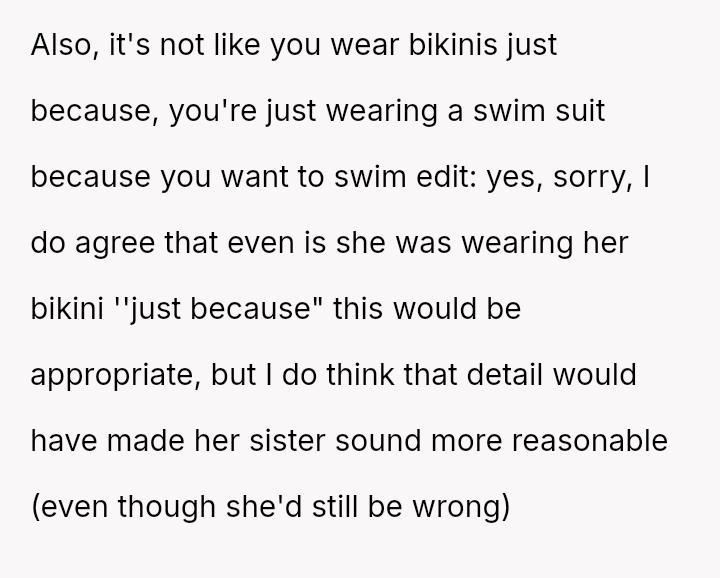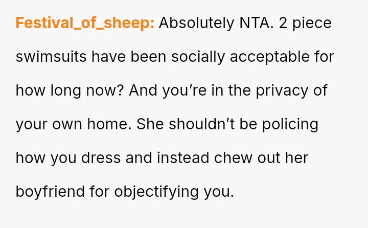 The original poster (OP) feels justified in wearing their preferred swimwear in their own yard, a*serting that any issue lies with the boyfriend's actions or the sister's reaction, not their attire.