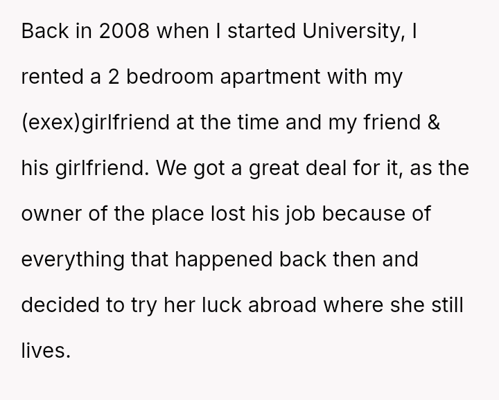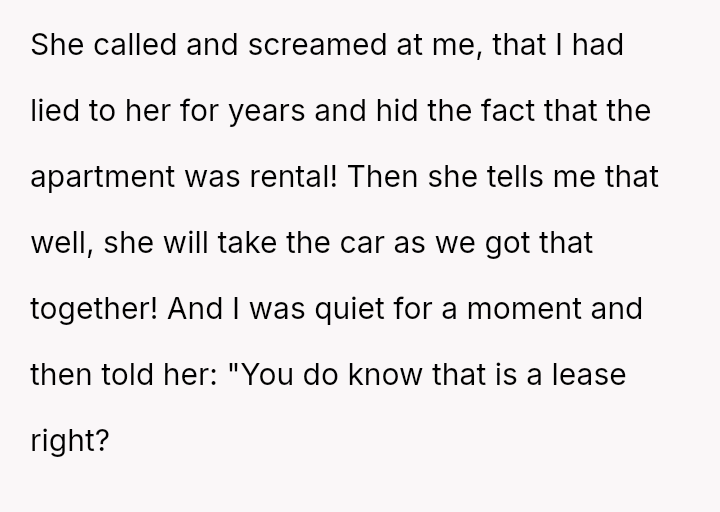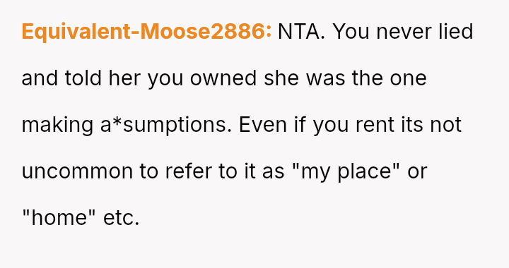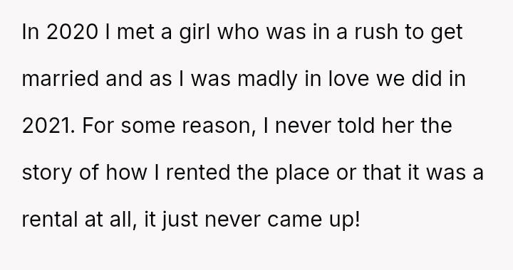 The original poster (OP) is facing conflict because they presented a rented apartment, managed under a long-term arrangement, as their own property to their spouse during their marriage.