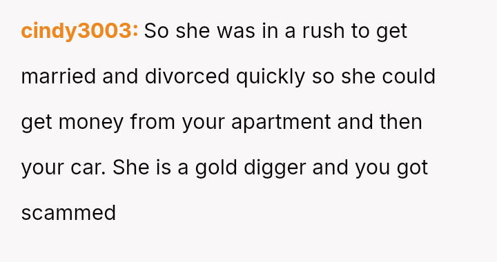 The situation forces a debate: Was the OP's failure to disclose the rental status of the apartment a significant lie that justifies the spouse's expectations regarding a*set division and incurred costs, or were the spouse's actions (hiring an evaluator without consultation and demanding payment) unreasonable given the OP's clear inability to afford outright ownership?