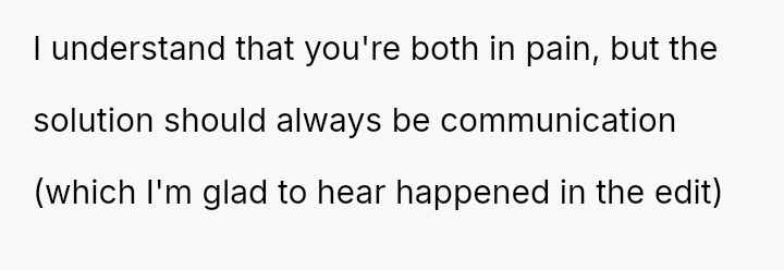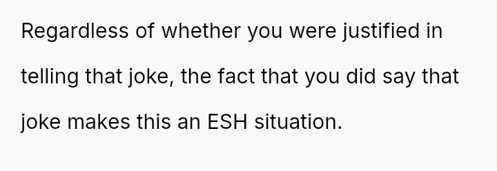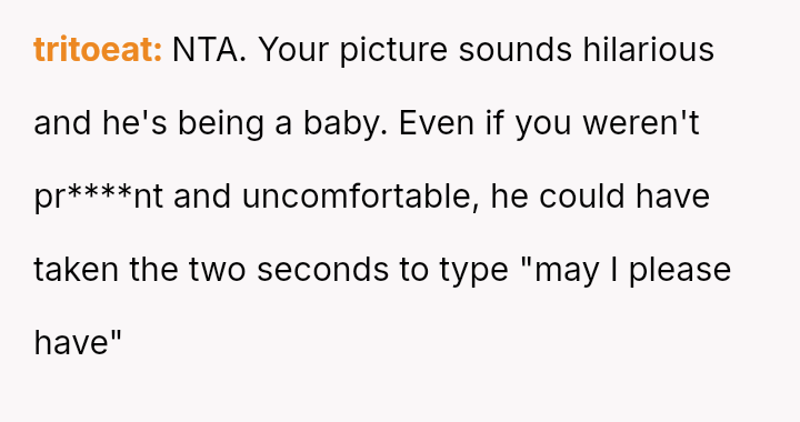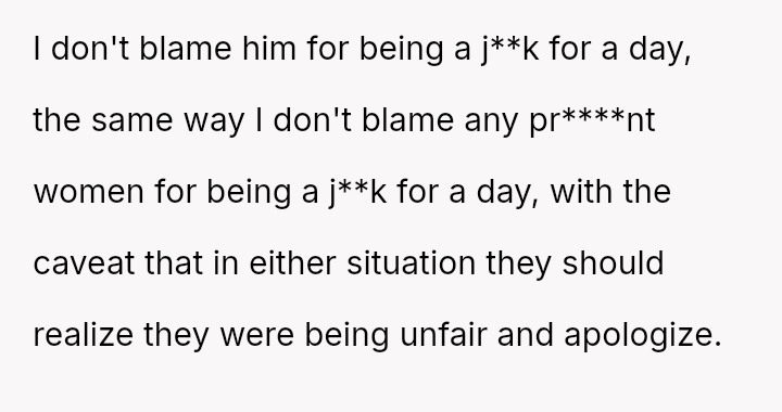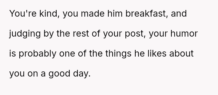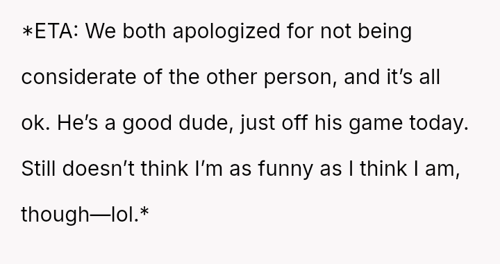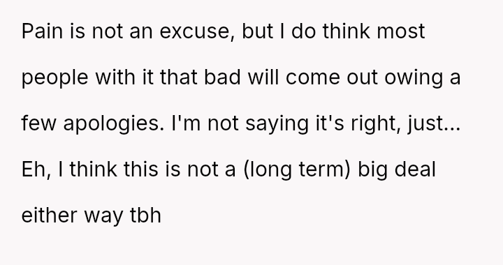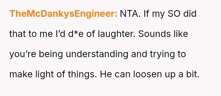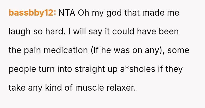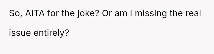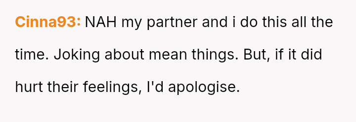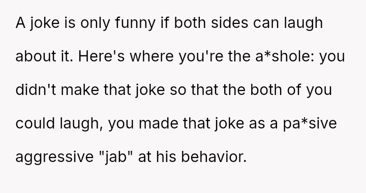 The core question remains whether humor about perceived selfishness is an acceptable release valve in a relationship, even when one partner is genuinely suffering.