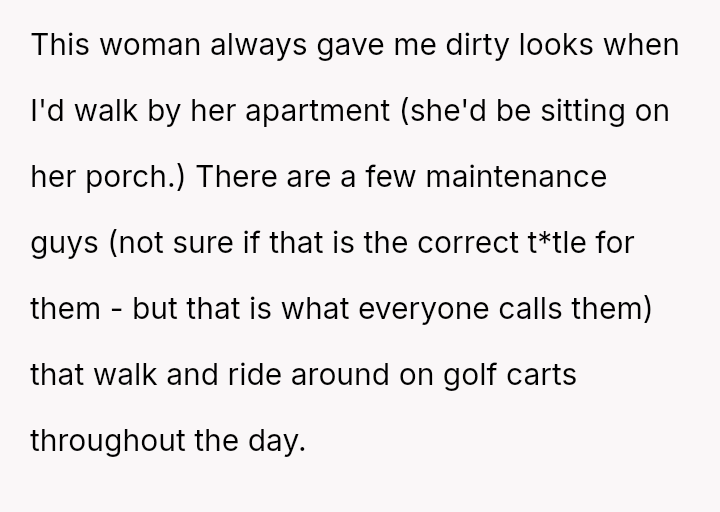 Given the OP's extreme reaction versus the neighbor's initial pa*sive aggression, who is more at fault for escalating the conflict in this community setting: the person reacting defensively to perceived shaming or the person initiating judgment through non-verbal cues?