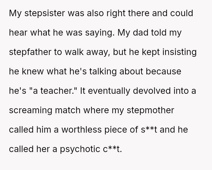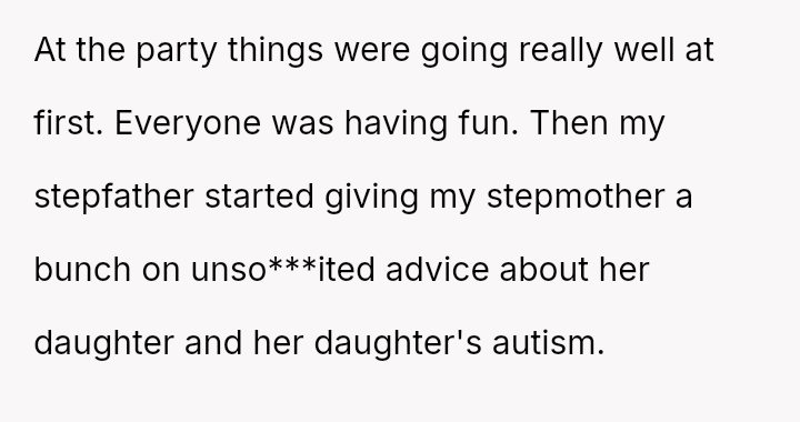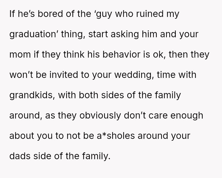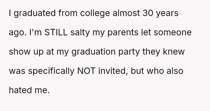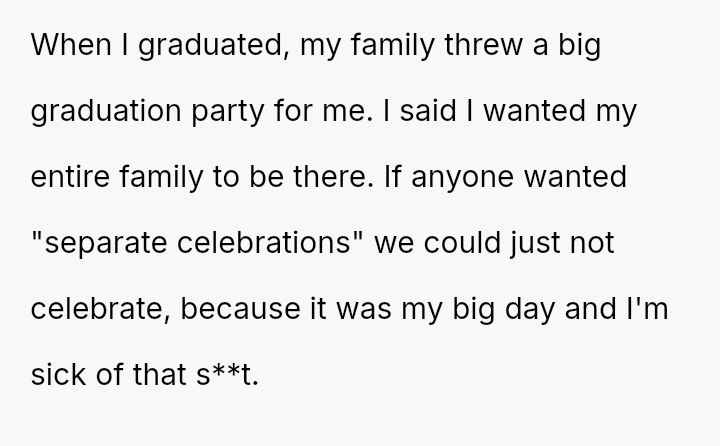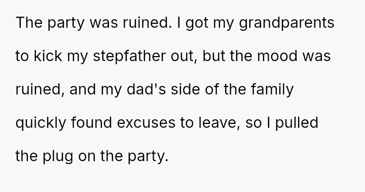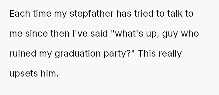 The original poster (OP) experienced a significant event, their graduation party, which was ultimately ruined by a severe argument involving their stepfather.