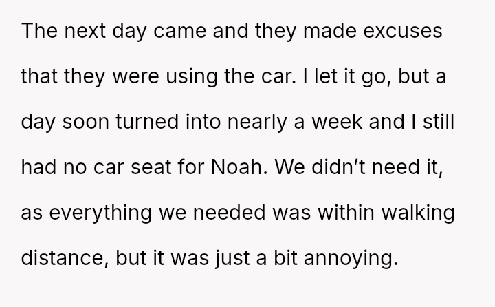 When a simple favor spiraled into weeks of silence and unreturned car seats, the cracks in their connection began to widen.