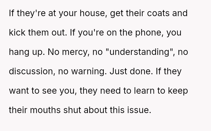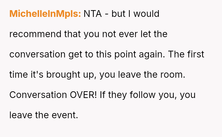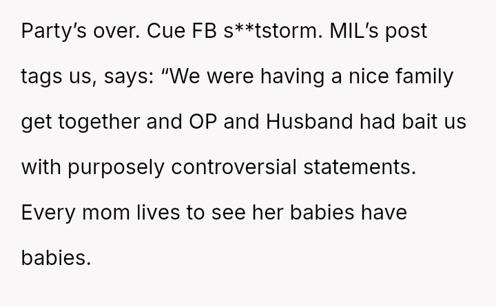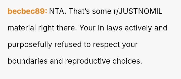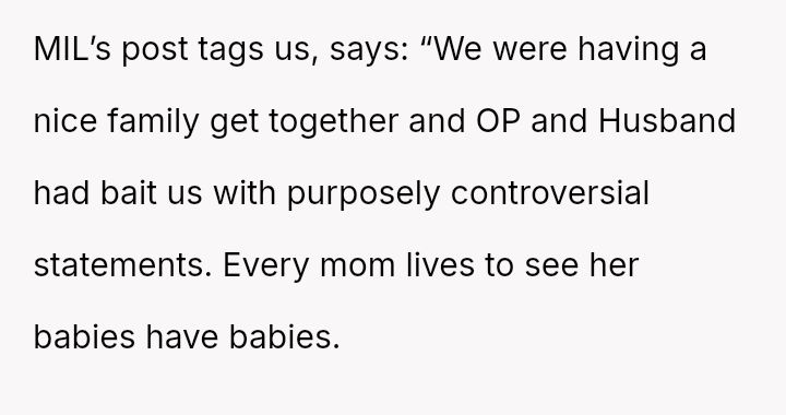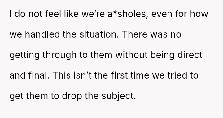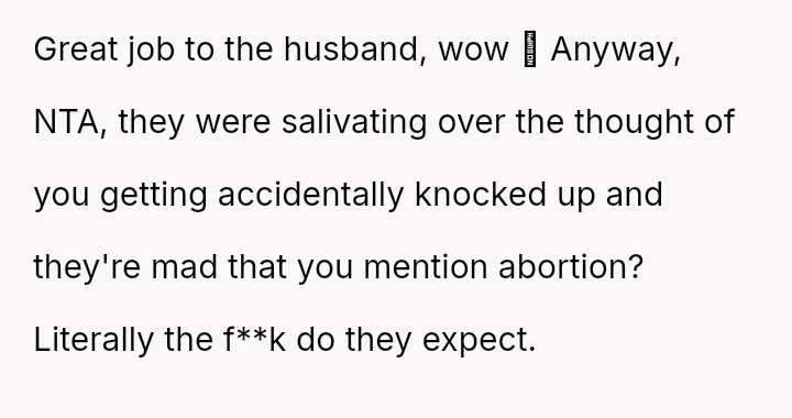 Given the history of boundary v***ations and the extreme escalation triggered by the OP's final statement about abortion, were the OP and her husband justified in their directness, or did their response cross an acceptable line of family discourse?