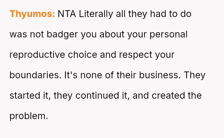 Should personal reproductive decisions remain entirely off-limits, regardless of family provocation?