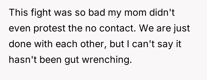 The weight of cutting off his mother, someone so deeply woven into his past, left his heart aching with raw, unspoken grief.