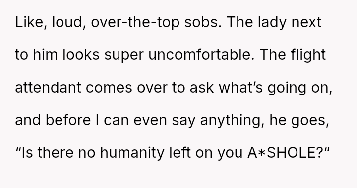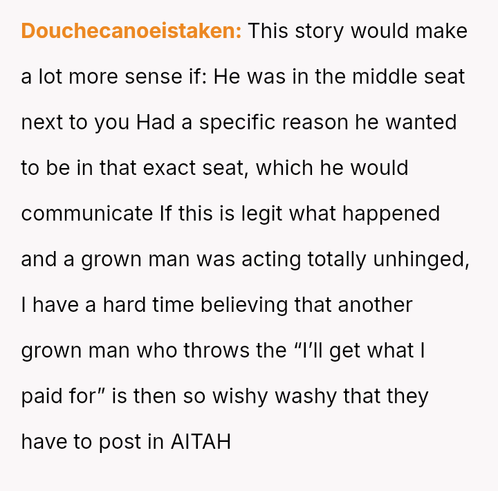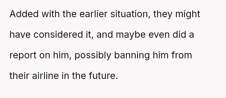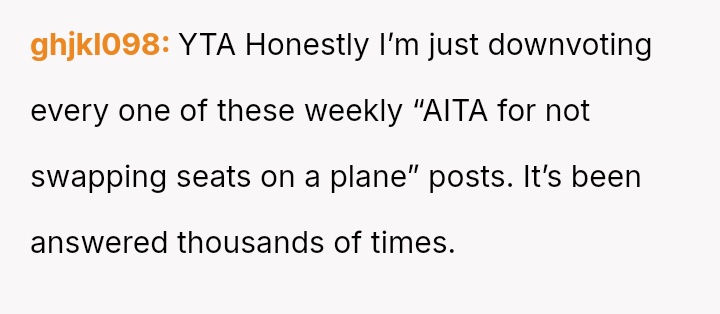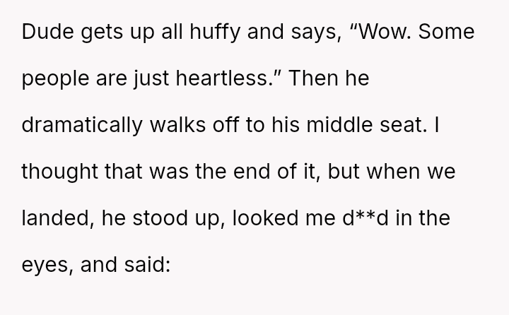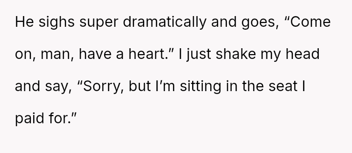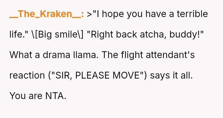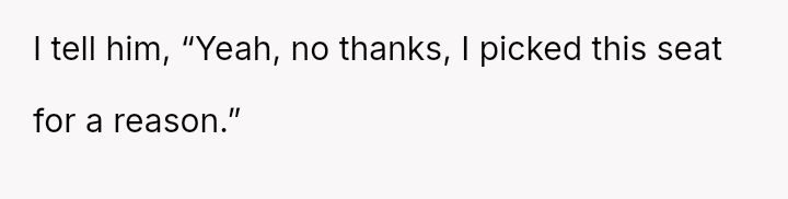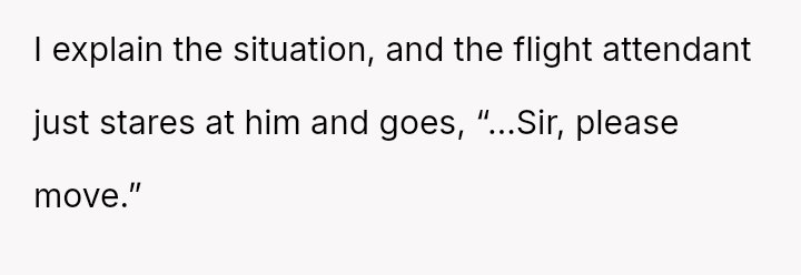 The situation required intervention from a flight attendant, leading the man to eventually move, though not before making a final, hostile remark to the poster upon landing. This entire encounter leaves the poster questioning whether he was wrong for refusing the switch.