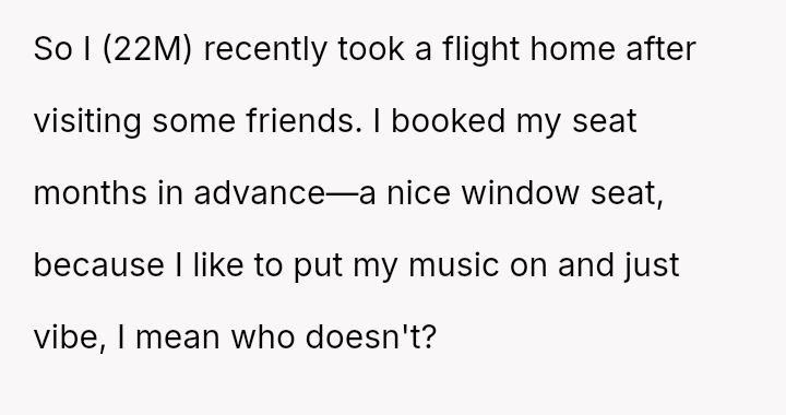 The original poster, a 22-year-old male, booked a specific window seat on a flight several months in advance because he preferred that spot for relaxing during the journey.