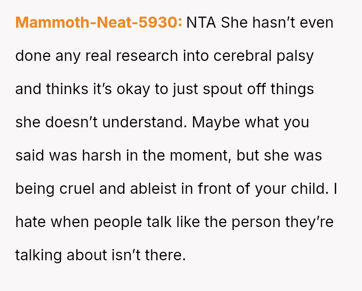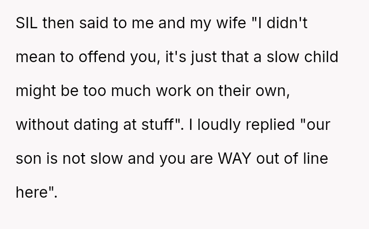 The original poster (OP) became deeply defensive and angry after his sister-in-law (SIL) made highly offensive comments questioning his son's capacity for dating and life prospects due to his cerebral palsy.