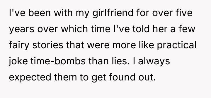Is the OP primarily at fault for weaving elaborate, deceptive narratives into his relationship as a form of humor, or is the girlfriend reacting disproportionately to a known pattern of harmless, albeit unusual, storytelling?