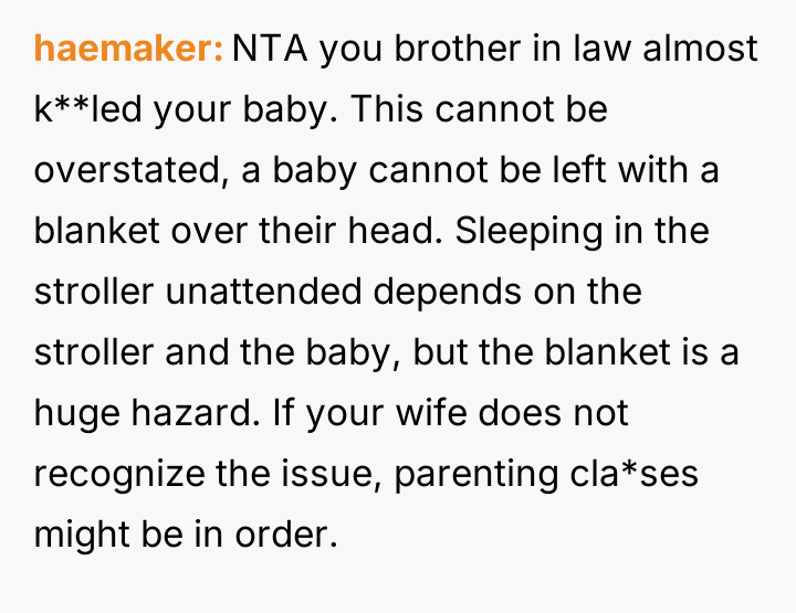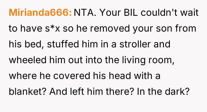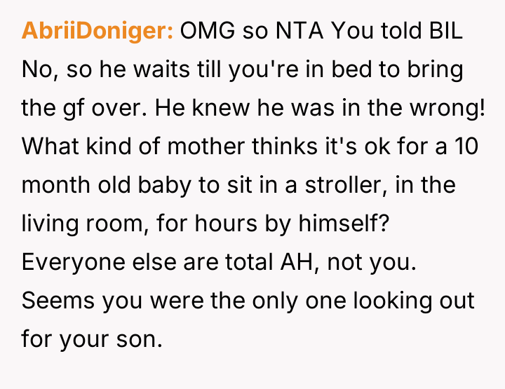 AITA For kicking my brother in law out after he made my 10 months old son spend the night in a stroller?