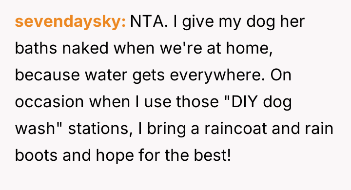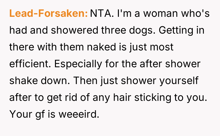 Was the OP's attempt to manage the dog bathing efficiently by showering nude an acceptable choice given the context of shared living and good intentions, or did this breach of assumed decency and privacy justify the girlfriend's extreme reaction?