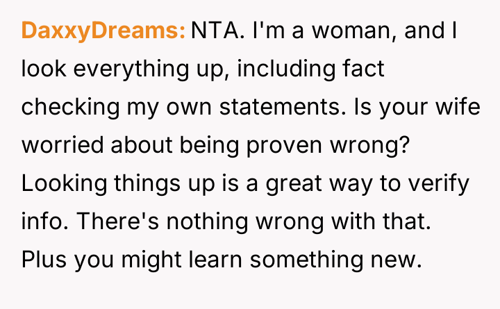 AITA for researching stuff when my wife corrects me or tells me something I didn't know?