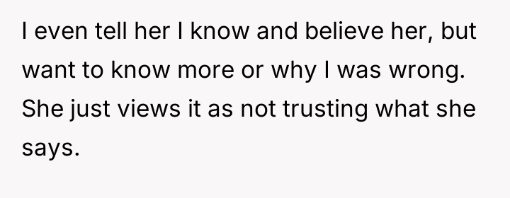 In the quiet space of their six-year marriage, a simple act of curiosity becomes a silent fault line. He seeks understanding, hoping to grow and learn, but his wife hears doubt instead, a crack in the foundation of trust they’ve built together.