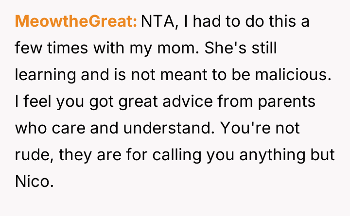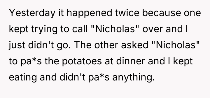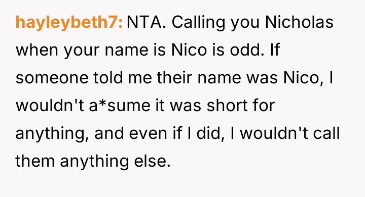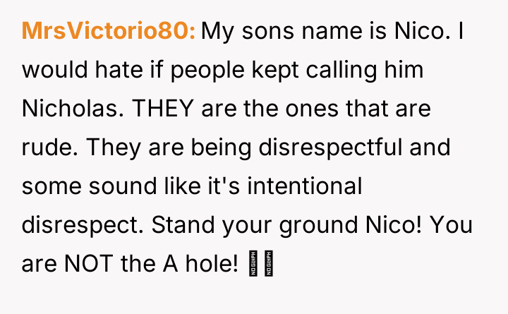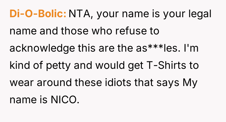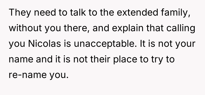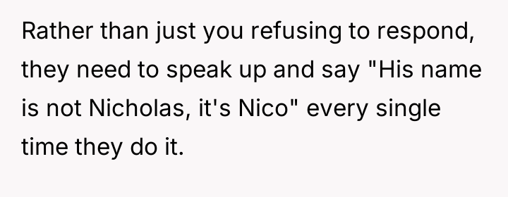 Is Nico justified in asserting his identity by ignoring those who deliberately use the wrong name, even if it causes friction with extended family, or should he prioritize social harmony by accepting the repeated misnaming given the importance of maintaining a stable placement?