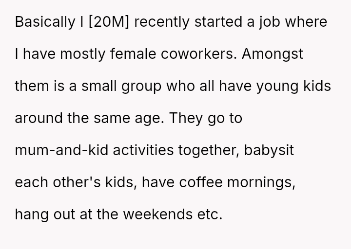 Surrounded by female coworkers deeply connected through their roles as mothers, he unknowingly steps into a delicate web of emotions, a*sumptions, and exclusion.