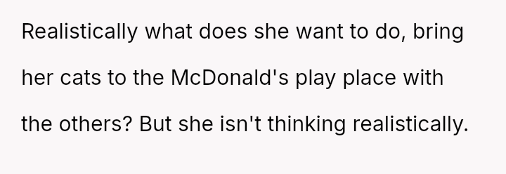 The woman who called herself "mama" and spoke of "the kids" is not part of the motherly circle in the way he believed, but rather a devoted caretaker of her feline companions.