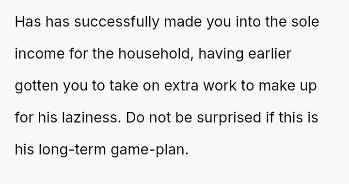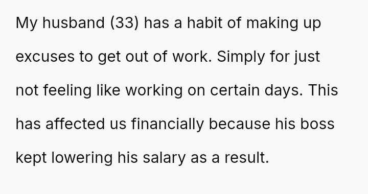 In the quiet storm of their struggling household, a wife bears the weight of her husband's unraveling work ethic, watching as excuses pile up like shadows over their financial s**bility.