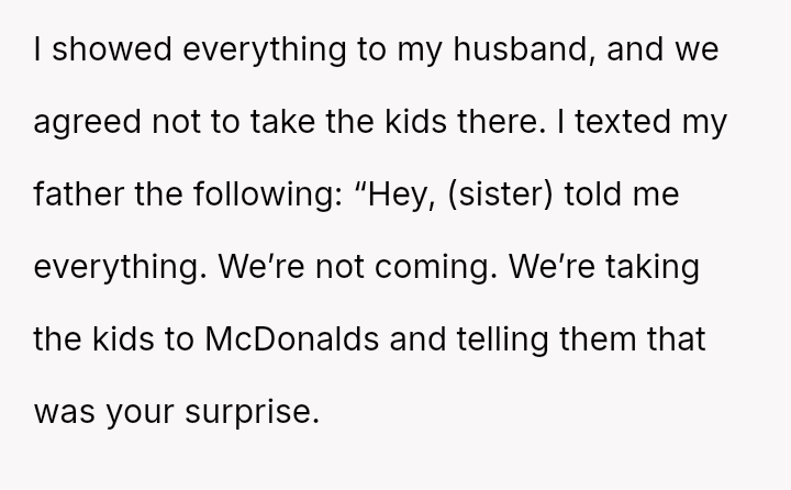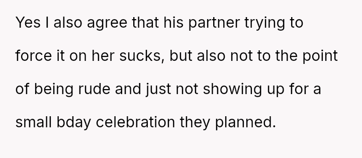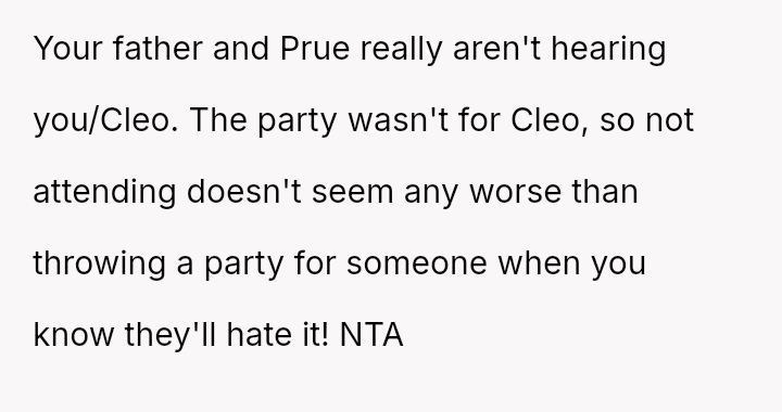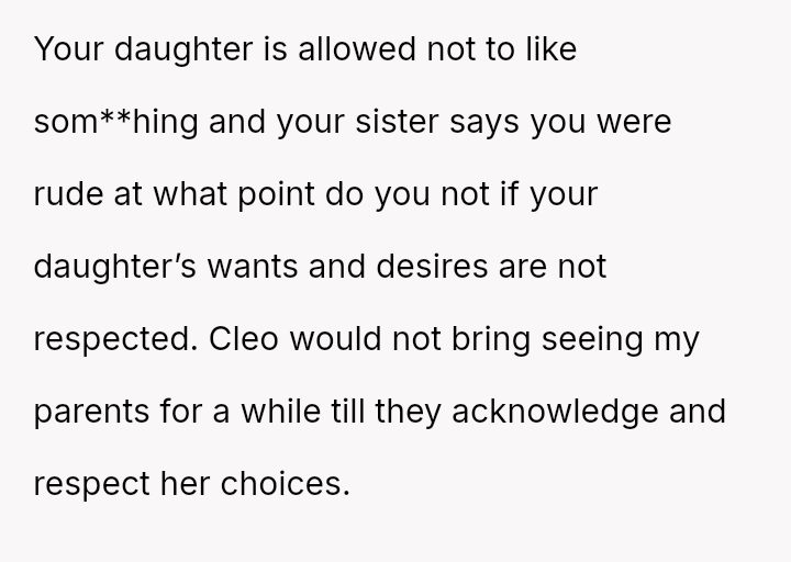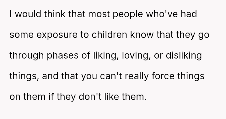 Does the mother have the right to strictly enforce her child's es**blished preferences against the wishes of extended family, even if it means publicly rejecting a surprise event, or was the m**hod of refusal unnecessarily harsh and disrespectful to the family members who planned it?