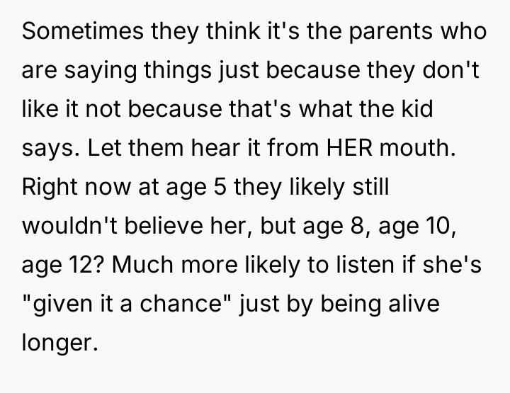 Does the mother have the right to strictly enforce her child's established preferences against the wishes of extended family, even if it means publicly rejecting a surprise event, or was the method of refusal unnecessarily harsh and disrespectful to the family members who planned it?
