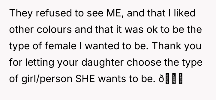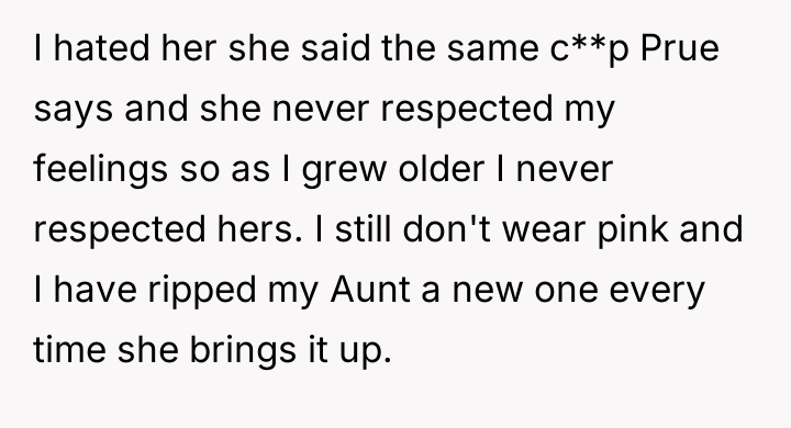 At just five years old, her dislike for pink was not a whim but a clear statement of self, yet the world around her, especially Prue, refused to listen, pressing their colors onto her like a mask she never asked to wear.