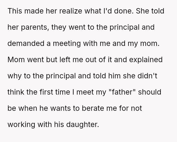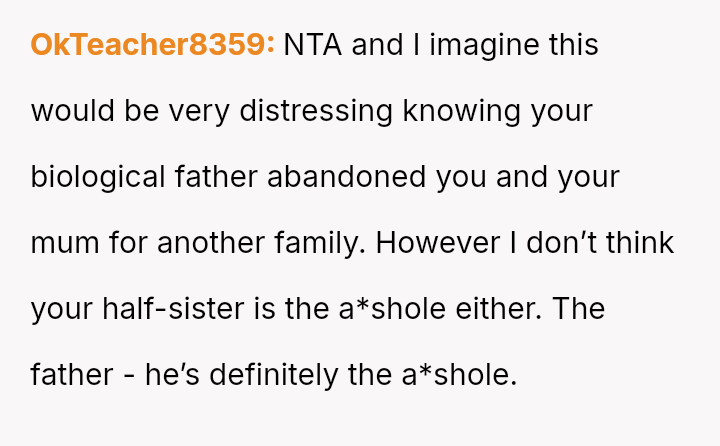 Is the OP justified in using the school environment to enforce their boundary against the intrusion from their father's family, or does the effort by the father's daughter and parents to force interaction const*tute a reasonable, albeit unwelcome, attempt at family reunification that overrides the OP's comfort?