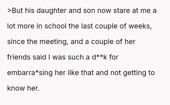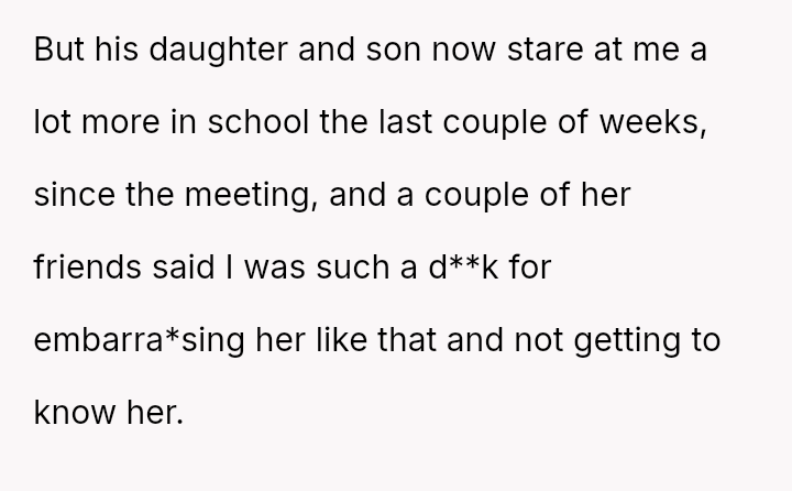 The central conflict arises from the actions of the father's current family, who are actively pushing for connection through the school system, leading to confrontations and accusations of bullying against the OP.