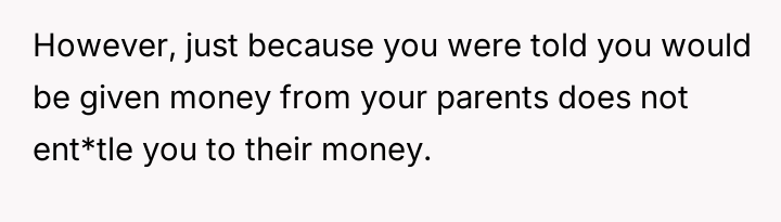 Given that the parents have already allocated the OP's dedicated funds based on perceived need and the fiancé's family's wealth, is the OP's anger justified regarding the v***ation of a long-standing agreement, or should they accept the decision as the parents' prerogative over their own money, despite the resulting impact on their own wedding plans?