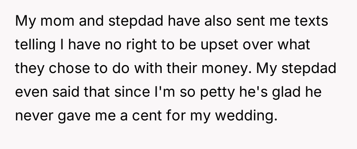 AITA for refusing to talk to my mom after she gave my stepsister my wedding fund?