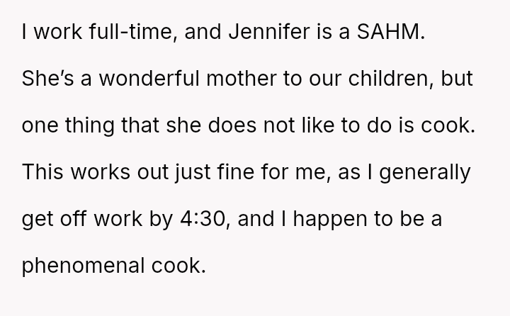 Jennifer's dissatisfaction with his culinary efforts casts a shadow over what should be moments of warmth and togetherness.