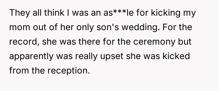 AITA For Kicking my Mother out of my Wedding After She Brought my Ex as Her Plus One