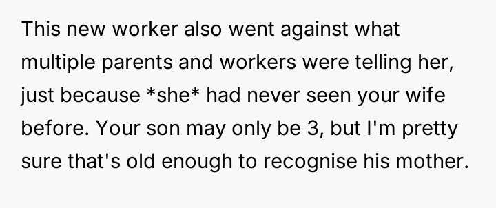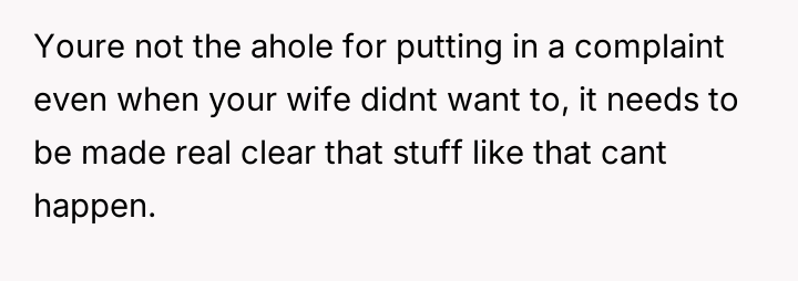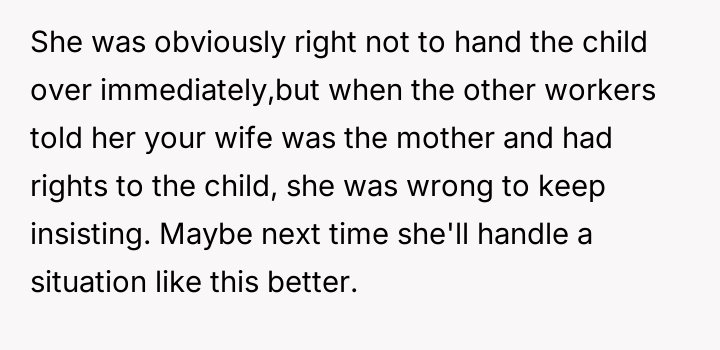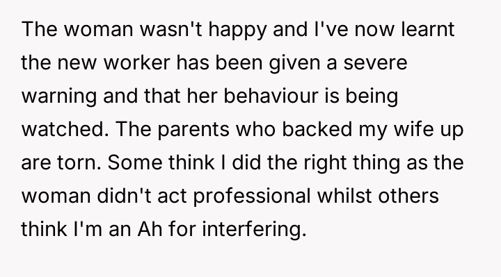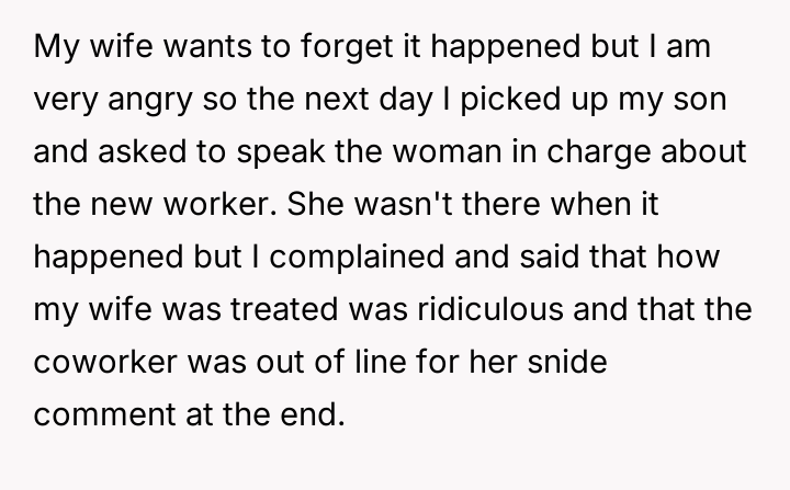 Was the husband justified in formally complaining about the new nursery worker's actions and subsequent comment, validating his wife's distress, or was he wrong to escalate the issue when his wife preferred to let it go?
