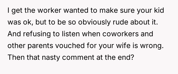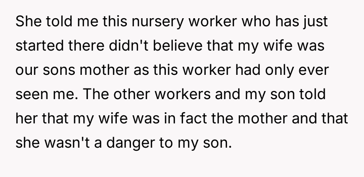 AITA for making a complaint against a nursery worker due to how she reacted to my wife picking our kid up?