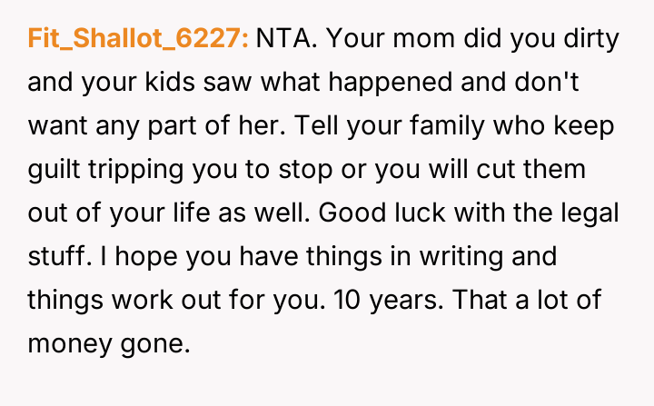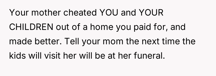 AITA for refusing to let my kids see my mother after she sold the home I paid for?