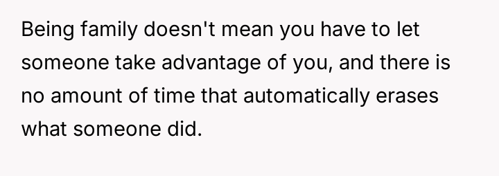 The central conflict lies between the narrator's justifiable anger and sense of ent*tlement regarding the money spent, and the family's expectation that they should prioritize familial connection over financial accountability by simply 'moving on.' The core debate hinges on whether the narrator's actions—refusing further contact and seeking legal recourse—are justified given the financial breach of trust, or if the family's insistence on reconciliation, regardless of the financial harm, should take precedence.