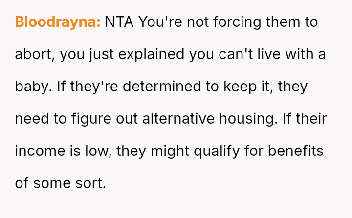 The core debate centers on whether the OP has the right to protect their personal well-being and es**blished boundaries from a change they did not agree to, or if their obligation to support their family overrides their need for a quiet living space, especially when the alternative suggested by the brother is abortion. Should the OP enforce their boundary now, or find an unsustainable compromise?
