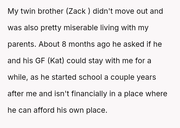 Then came her twin brother, still trapped in the toxic environment she had escaped, seeking refuge with his girlfriend by her side.