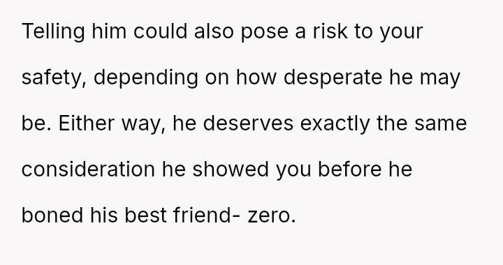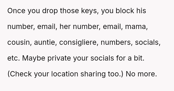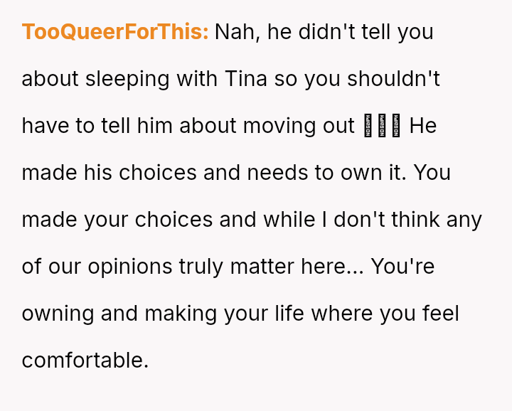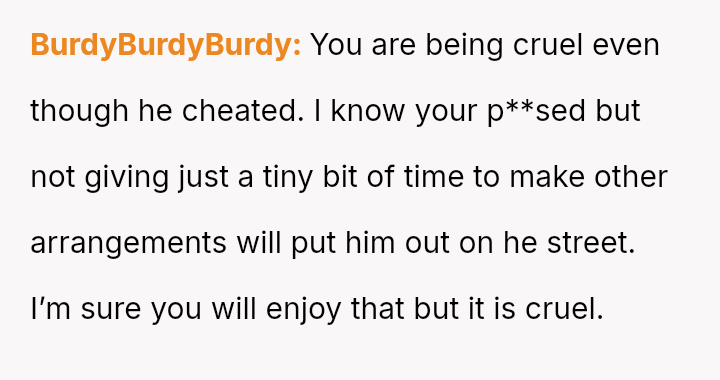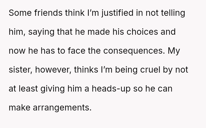 Given the depth of the betrayal and the OP's prior decision to move out, is it crueler to leave without notice, forcing him to immediately face the housing consequences of his actions, or is it kinder to provide a warning, thereby extending the emotional burden of the relationship for a brief period?