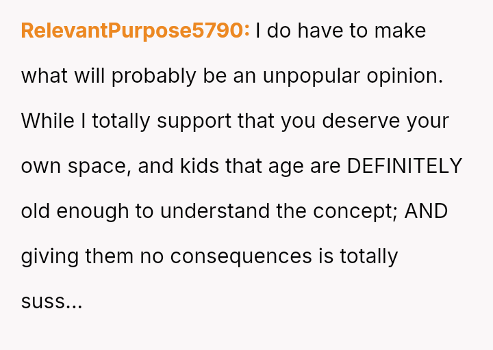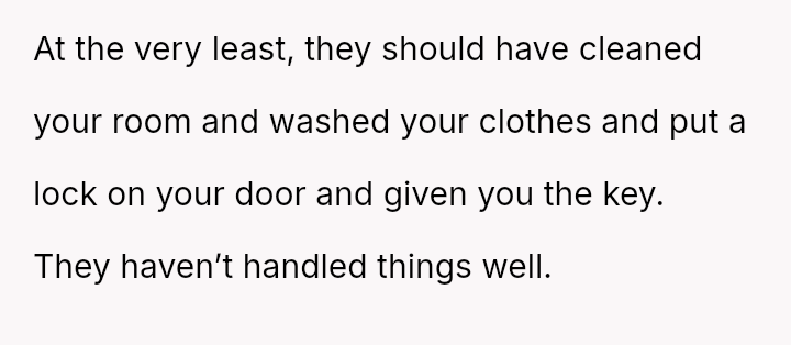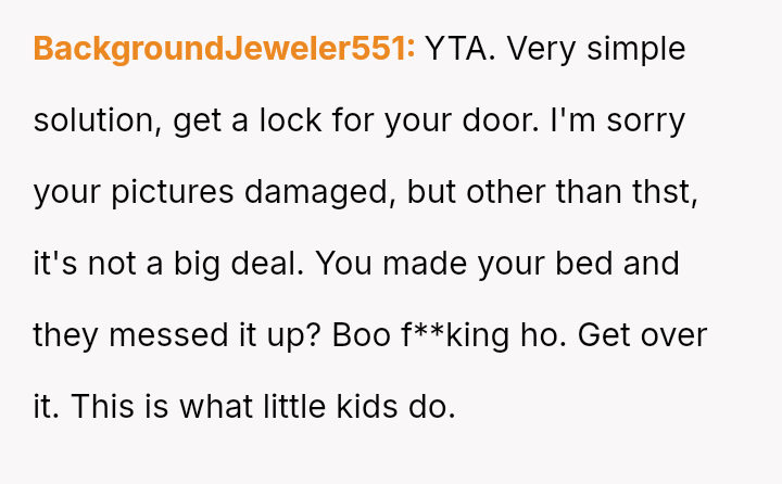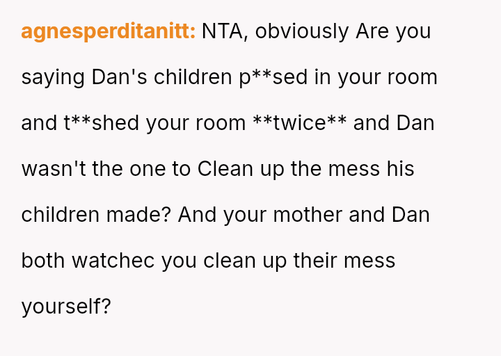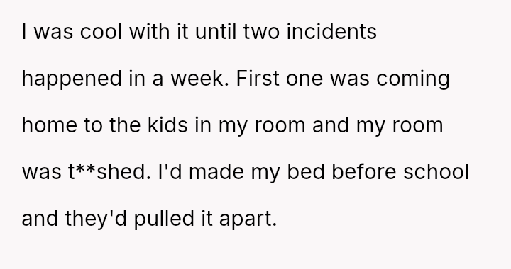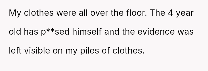 First, the OP returned home to find their room completely t**shed by the children, including visible evidence of the 4-year-old having soiled clothes in the room.