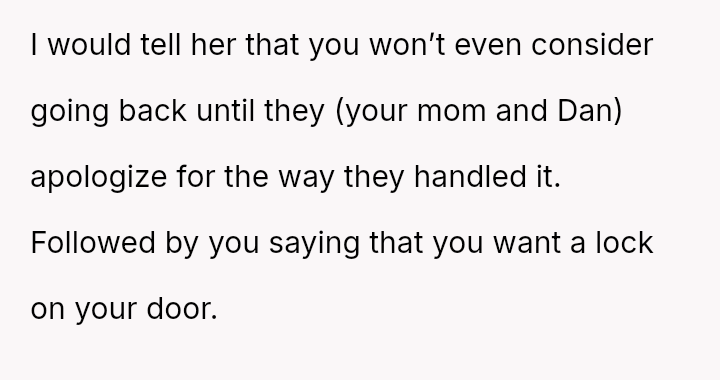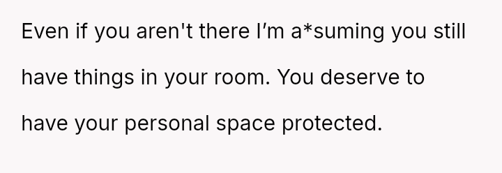 Readers must weigh the OP's need for personal sanctuary against the dynamics of the blended family structure.