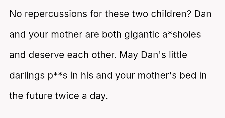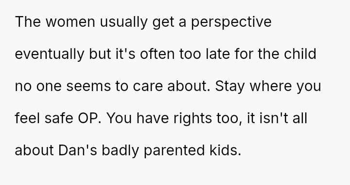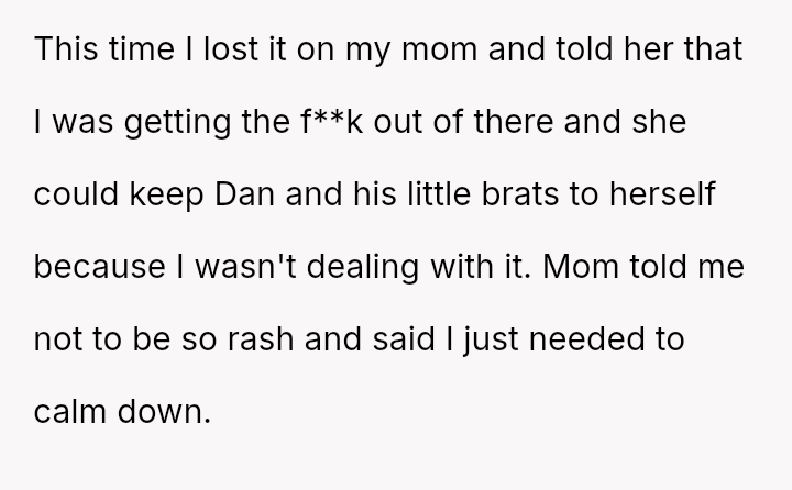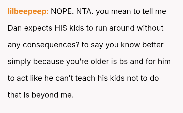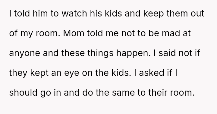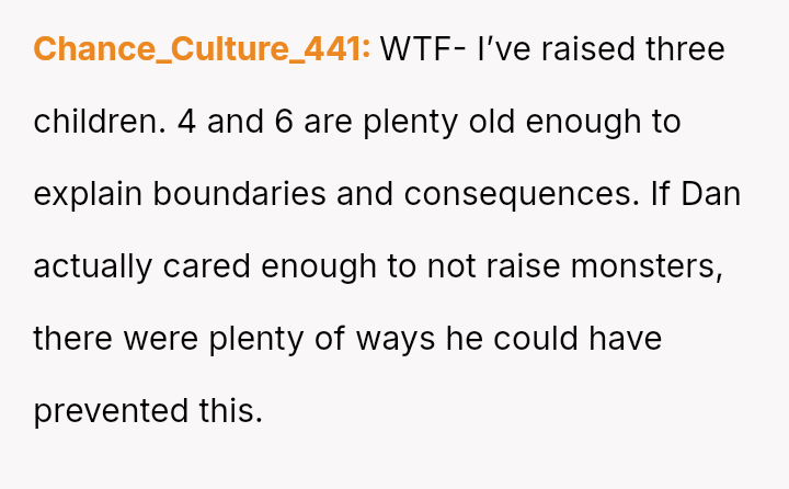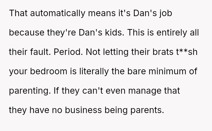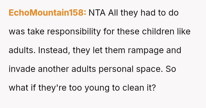 When the OP expressed anger and demanded the children be kept out of their space, both the mother and Dan dismissed their feelings, stating the children were too young to be held responsible.
