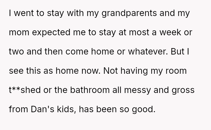The OP subsequently left to stay with their grandparents, questioning if they were wrong for their reaction.